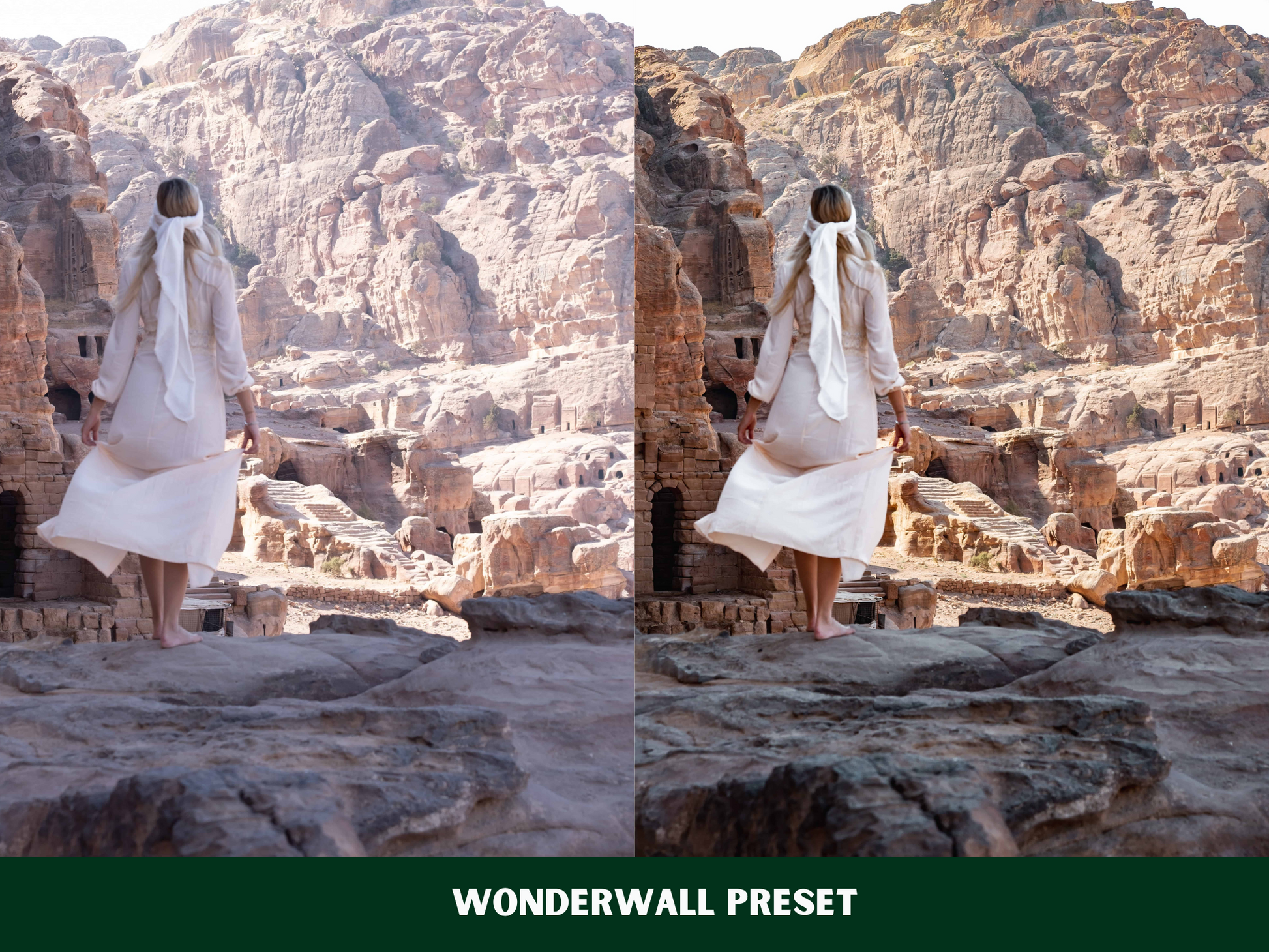 The Jewels of Jordan Presets are custom-made to instantly improve your photos and give your feed a Gold Desert Adventure vibe by infusing your images with pure whites, dunes, and sandy landscapes, and subtle golden glow color-grading.