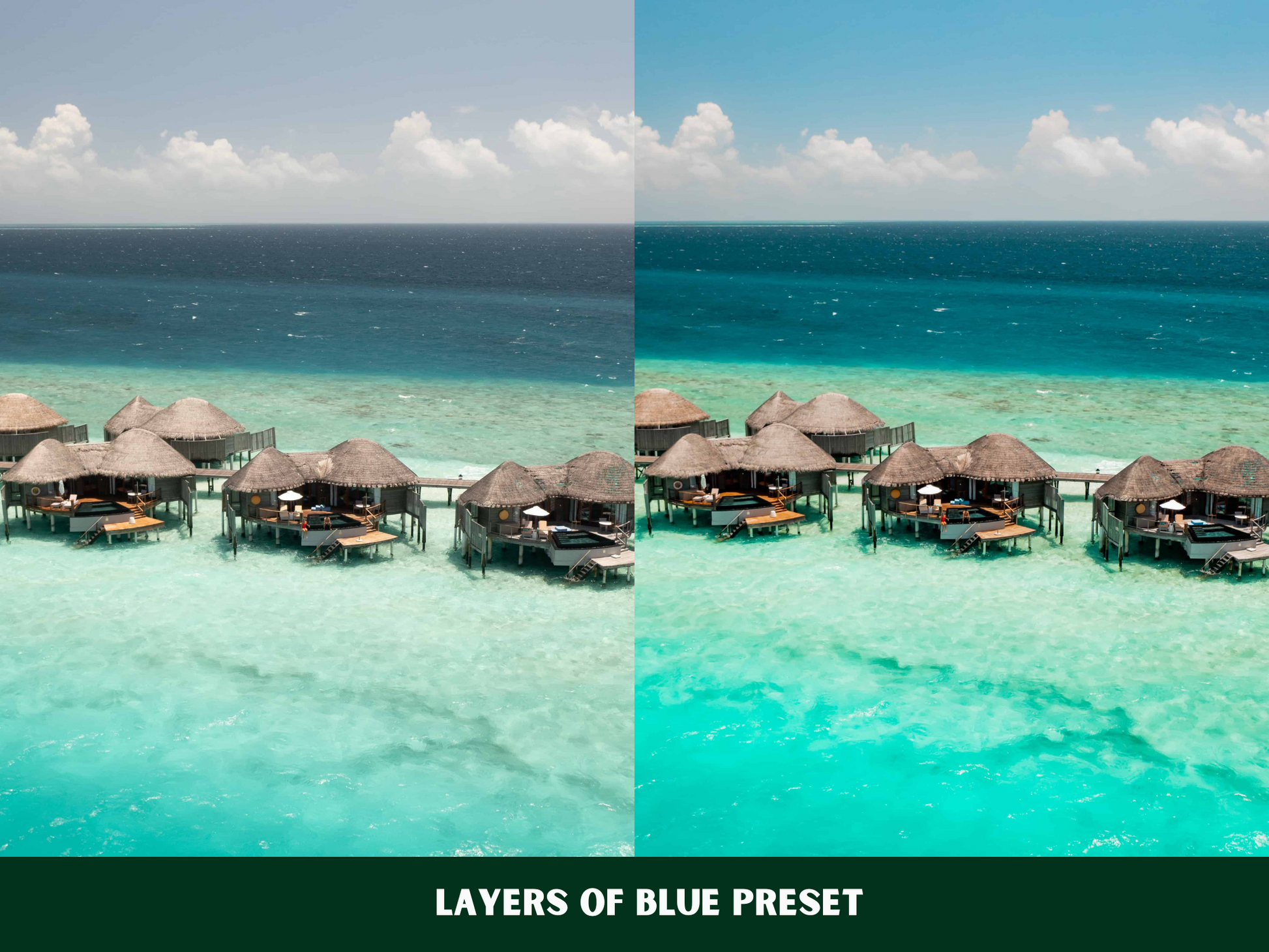 The Mesmerizing Maldives Presets are custom-made to instantly improve your photo's and give your feed that island life vibe by infusing your images with deep endless whites, light blue and turquoise tints, tanned skin tones color-grading.